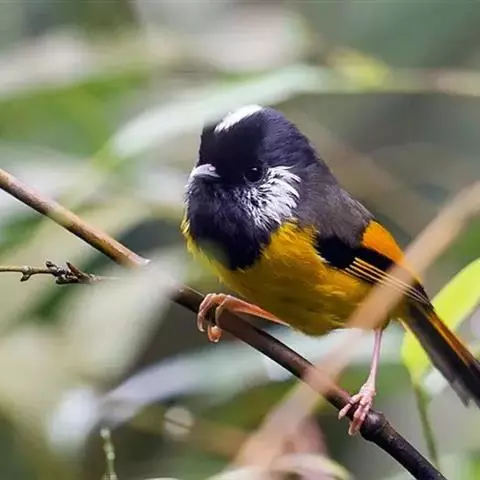 金头穗鹛小型鸟类,体长10~11厘米,是一种黄色小鸟。头顶金黄色有黑色纵纹,眼先黑色,…