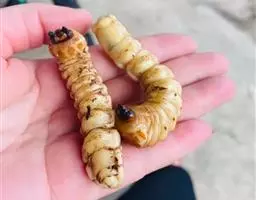 密布小刻点,有灰白色与黄褐色交杂组成的毛斑。臀板向下垂直,覆白色毛,近中部与端部两侧有褐色斑 4个。后足腿节内缘端部有长而直的齿1个,外缘端部有齿1个;后胫节腹面端部有尖的内齿与外齿各1个。幼虫体肥大,弯曲,呈乳白色。1龄幼虫前胸背板有齿,脱皮后即消失。