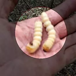 斗米虫为锈色粒肩天牛的幼虫,锈色粒肩天牛主要危害槐树Sophora japonica,…