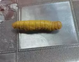 3.4—3.6mm,椭圆形,黄色,头部向下弯曲,足和翅痕明显。
