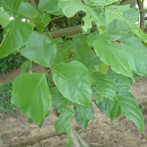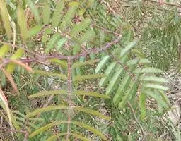 小枝圆柱形,羽状复叶,小叶多脱落,小叶片长椭圆形,先端钝或微凹,全缘。气微,味苦。