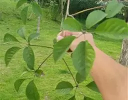 常绿乔木,高可达15米,胸径15-20厘米;树皮光滑,嫩枝具长椭圆形白色皮孔。大型奇数2回羽状复叶,长达60厘米,中轴圆柱形,有沟纹;小叶卵形至卵状披针形,长8-12厘米,宽2.5-4厘米,顶端长渐尖,基部阔楔形,偏斜,全缘,两面无毛,侧脉5-6对;侧生小叶柄长5毫米,顶生小叶柄长达3厘米。