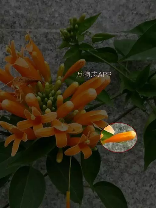 炮仗藤 Miers)紫葳科炮仗藤属藤本植物。小枝顶端有丝状卷须;叶对生,卵形;花萼钟状,橙红色,…