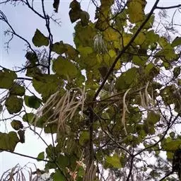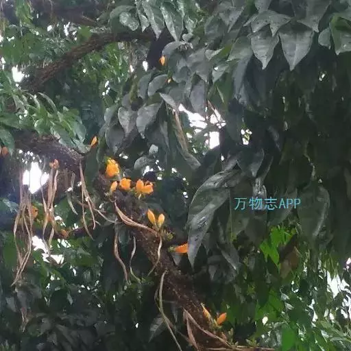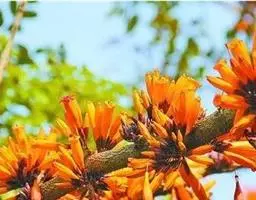 花丝长约4-5厘米,基部被细柔毛,花药个字形着生,药2室,药隔顶端 火烧花 延伸成芒尖,花药及柱头微露出花冠管外。子房长圆柱形,花柱长约6厘米,柱头2裂,胚珠多数。蒴果长线形,下垂,长达45厘米,粗约7毫米,果爿2,薄革质,隔膜细圆柱形,木栓质。种子卵圆形,薄膜质,丰富,具白色透明的膜质翅,连翅长约13-16毫米。花期2-5月,果期5-9月。