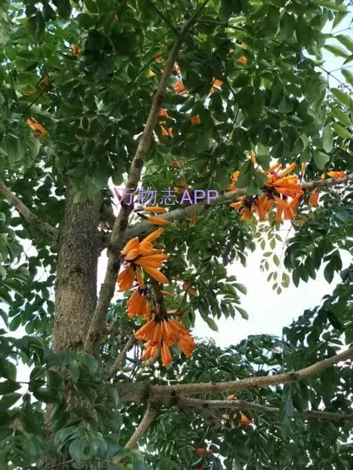 火烧花 Kurz)是紫葳科火烧花属常绿乔木;树皮光滑;叶为奇数羽状复叶对生,小叶卵形或卵状披针形,…