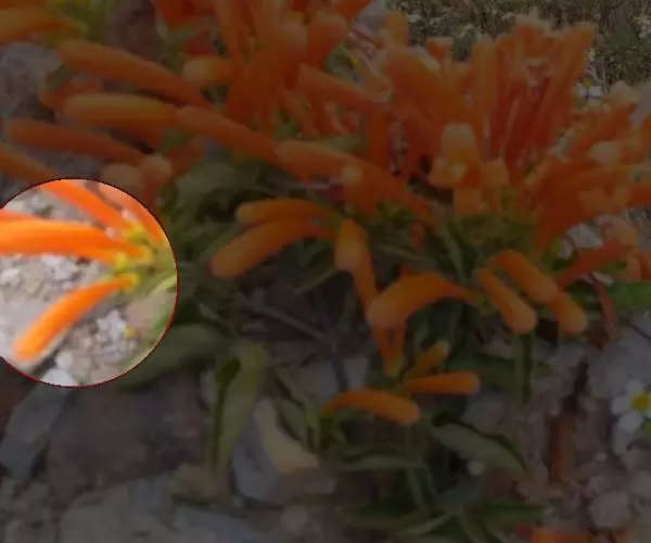 花序有花5-13朵,组成短总状花序,着生于老茎或侧枝上,花序梗长约2.5-3.5厘米; 花梗长5-10毫米。花萼长约10毫米,直径约7毫米,佛焰苞状,外面密被微柔毛。花冠橙黄色至金黄色,筒状,基部微收缩,长6-7厘米,直径1.5-1.8厘米,檐部裂片5,半圆形,长约5毫米,反折。