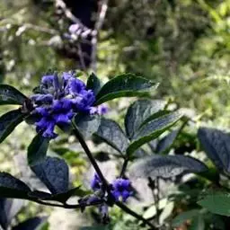 花大而美丽,直径6-9厘米,通常单一顶生或有时2-3朵组成花序;苞片披针形至长圆形,一至三浅裂;花梗长2-8厘米,密被伸展的白色柔毛;萼片蓝色,开展,卵形至长椭圆状卵形,长3-4.5厘米,宽1.5-2.5厘米,顶端急尖或钝;花瓣瓣片蓝色或白色,近直立,圆状卵形,长1.5-2.5厘米,宽1-1.5厘米,顶端钝形或圆形,距短,长0.6-1.2厘米,末端强烈地弯曲成钩状;雄蕊长5-10毫米,花药长椭圆形,黑色;退化雄蕊白膜质,线形,长约8毫米;心皮8-10,密被开展的白色长柔毛。