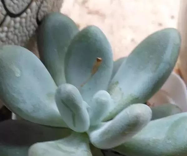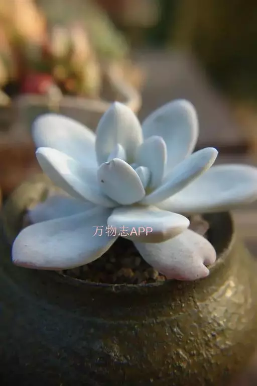 星美人是景天科、厚叶草属,多年生多肉类草本植物。茎直立,肉质叶互生,呈延长的莲座状排列,倒卵形至倒卵状椭圆形,长先端圆钝,表面平滑,叶色从泛蓝的灰绿色至淡紫色不等,被有浓厚的白粉。花瓣椭圆形,紫红色至红色不等。裂片直立。花药淡黄色。