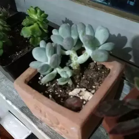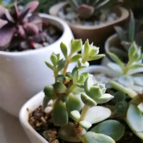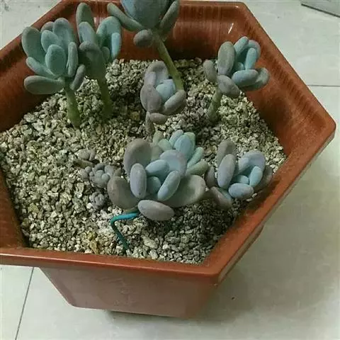 星美人是景天科多肉植物中的一个经典品种,其肉质叶浑圆可爱,色彩素洁淡雅。而用叶片扦插所产生的幼株叶片排列紧凑,犹如一粒粒珠圆玉润的卵石。常用小盆栽种,点缀书桌、几案、窗台等处,如同玉石雕琢的工艺品,非常奇特。