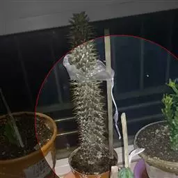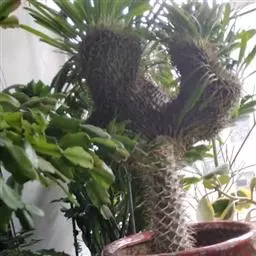 扦插成活后的幼苗基部的节距较大,叶片较小;但是生长茁壮后则枝顶的叶片变得肥大、节距变小、整体感觉头重脚轻,为了提高观赏效果可以进行整型。方法是将植株顶端(感觉偏重部分)剪断。母株去顶就是去掉顶端优势,使之萌发新的侧枝,侧枝长壮后可形成多干的植株,而且株形优美,提高了观赏效果。