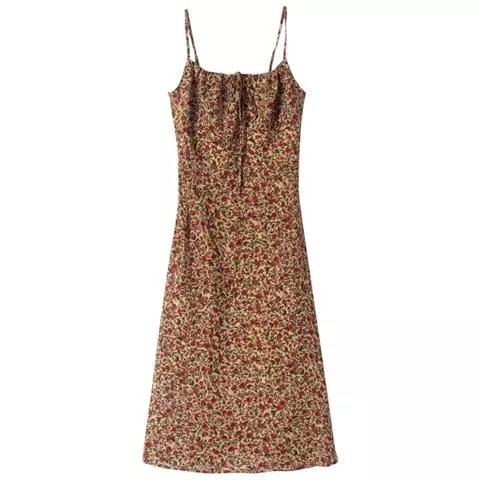 印花吊带裙