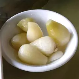 3. 锅里加油,烧至7成热,放入蒜瓣炒香