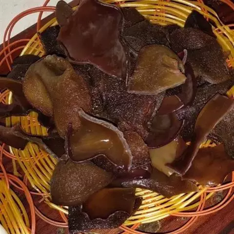 2、挑黑木耳的时候,选择颜色比较黑,看上去要干透,一朵一朵比较完整的相对优质。