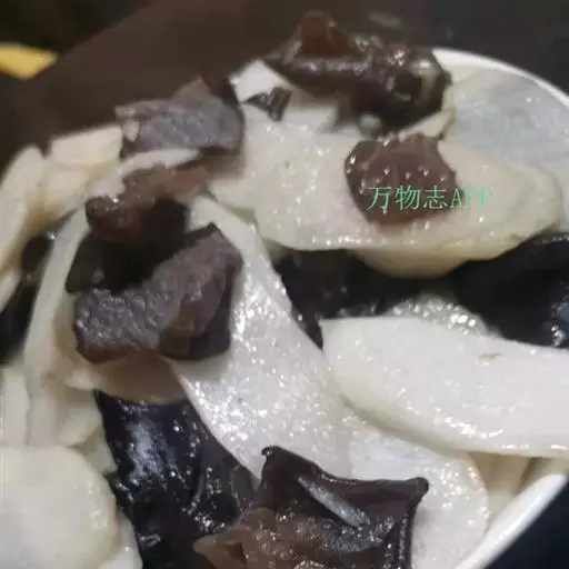 山药炒木耳 1、山药有2种,一种外表有很长的毛,比较细,是用来炖汤的,口感比较软滑,比较糯;另一种比较粗,外表毛比较短,用来炒菜,口感比较爽滑,比较脆;