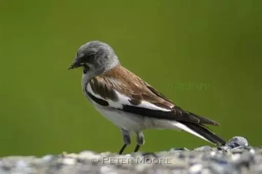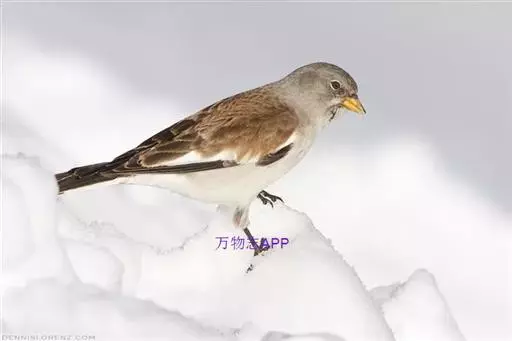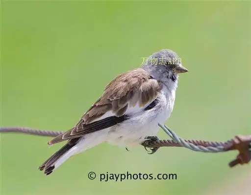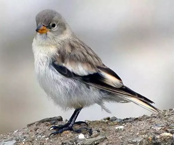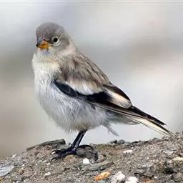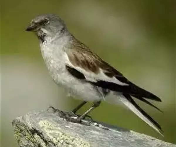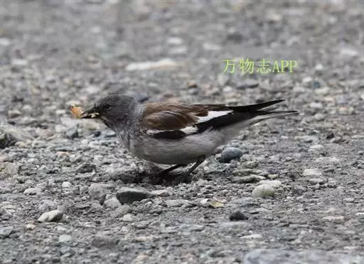 白斑翅雪雀(学名:Montifringillla nivalis):属典型的高原鸟类,共有7个亚种,体重30-34克,体长142-169毫米,较雪雀属中其他种体型稍大;雄鸟头灰,颏黑,翕和肩富于褐色;翼大部白色;除一对中央尾羽黑色外其余均为白色而具黑色羽端,飞行时尾部呈中间黑、两边白的形态。雌鸟像雄鸟,但中覆羽底色常显暗色。初级飞羽9枚,外侧飞羽的淡色羽缘(第一枚除外)在羽基和近端处,形稍扩大,互相骈缀,略成两道横斑状,在飞翔时尤见明显。嘴短粗而强壮,呈圆锥状,嘴峰稍曲。