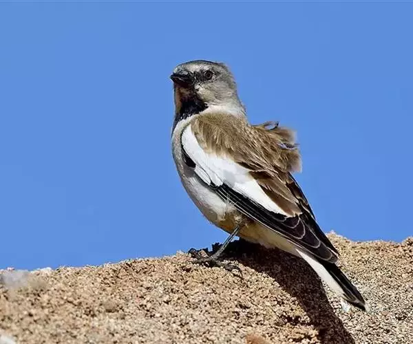 白斑翅雪雀是一种高山和高原鸟类,栖息在海拔2500-4500米的高山草甸、草原和高原地区,尤其喜欢多岩石的山地,也常出没于高山沟谷、高原上的房舍和居民点附近。