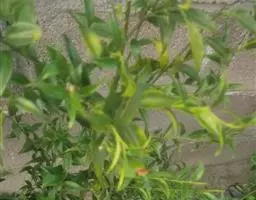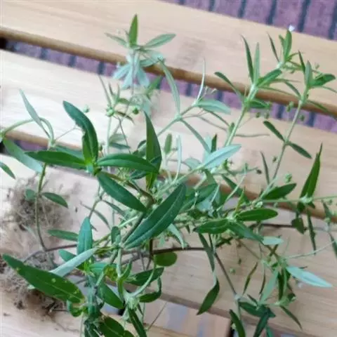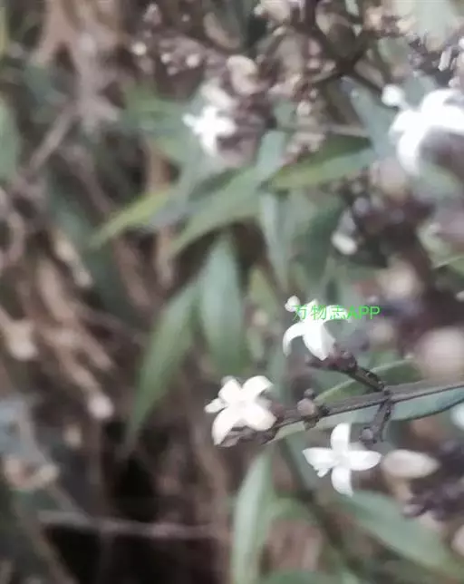 直立分枝的灌木状草本。茎圆柱形,上部近四棱形。叶对生;叶柄长2-7(-10)mm,稍粗壮;叶片革质,披针形,长4-10cm,宽2-2.5cm,先端渐尖或长尖,基部楔形或稍下延,侧脉2-3对,两面光滑无毛。聚伞花序三歧分枝,圆锥花序式排列,顶生或生于上部叶腋;苞片披针形;花序中央的花无梗,两侧的有短梗;萼简陀螺状,长3mm,裂片卵状三角形,与萼简等长;花冠白色或淡紫色,漏斗状,长6-10mm,裂片披针形,长2-2.5mm;雄蕊伸出。蒴果椭圆形,长4mm,有宿存的萼裂片,两瓣裂。