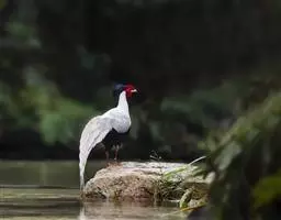 • 白鹇,是鸡形目雉科鹇属的一种留鸟。雄鸟上体白色并具黑色纹,下体黑色,头顶具黑色长羽冠,…