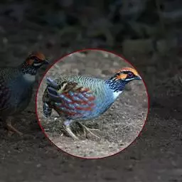 • 褐胸山鹧鸪:雄鸟体长22厘米,体重310克;雌鸟体长23厘米,体重220-275克。前额皮黄白色,…