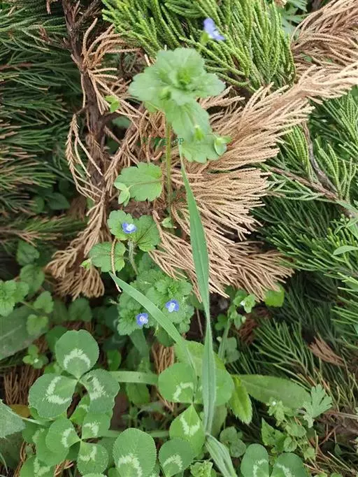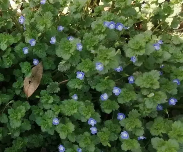 阿拉伯婆婆纳在早春开花以后,营养生长减缓,部分叶片开始向上斜生,与枝条浑然一体,极具观赏效果。两种栽植方式各有千秋。夏季前后,装扮花坛的作用就可以由众多的草花完成。