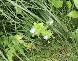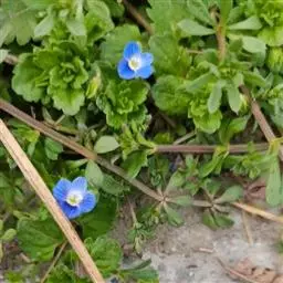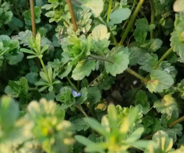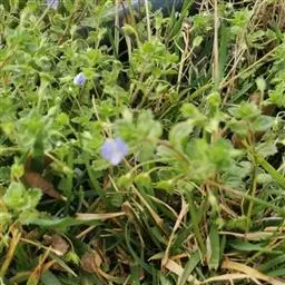 阿拉伯婆婆纳 (学名:Veronica persica Poir.)是玄参科,婆婆纳属铺散多分枝草本植物,高可达50厘米。叶片短柄,卵形或圆形,腋内生花的称苞片,边缘具钝齿,两面疏生柔毛。总状花序很长;花梗比苞片长,裂片卵状披针形,花冠蓝色、紫色或蓝紫色,雄蕊短于花冠。蒴果肾形,网脉明显,种子背面具深的横纹,3-5月开花。