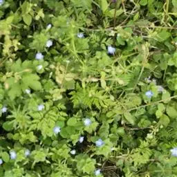 阿拉伯婆婆纳容易进行种子繁殖,种子结果量大,生活史很短,生长速度快,生长期长,具有极强的无性繁殖能力,匍匐茎着土易生不定根。