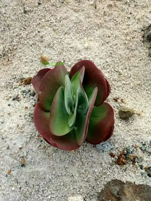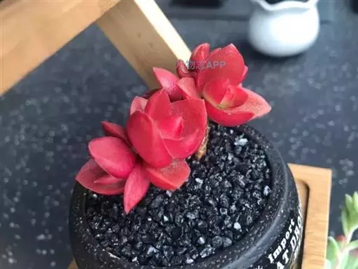 叶子表面宽厚,富肉质感且带有磨纱质感,看像石头质地;开红色小花,生于植株顶部,倒伞形密生,形状像花…