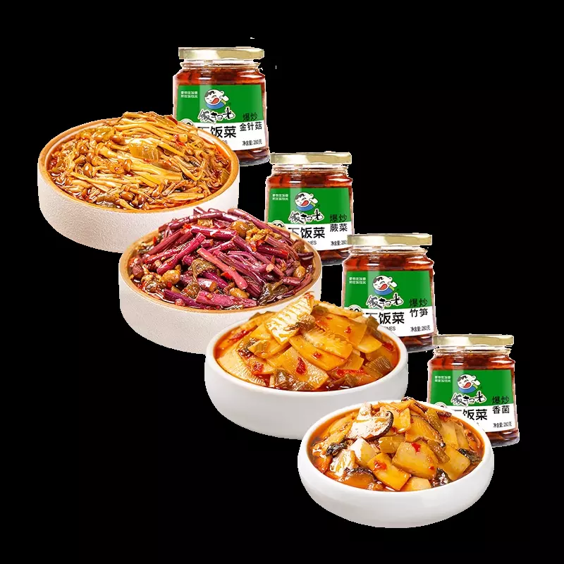 饭扫光即“饭扫光”开胃菜系列,是深受人们喜爱的特色川味食品,由四川高福记食品有限公司于2001年1月推出,现有野竹笋,野香菌,野蕨菜,爆炒金针菇,爽脆木耳等7种口味。