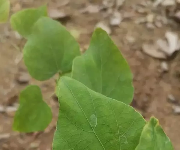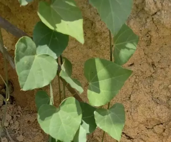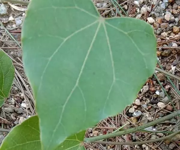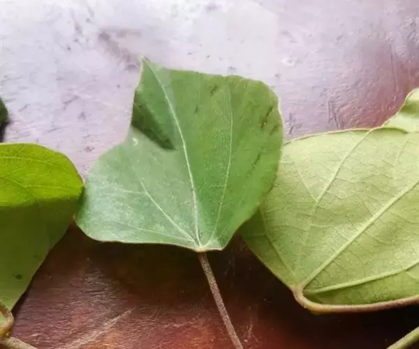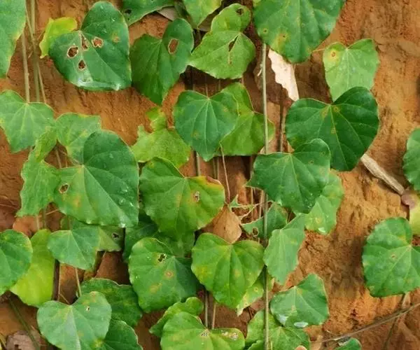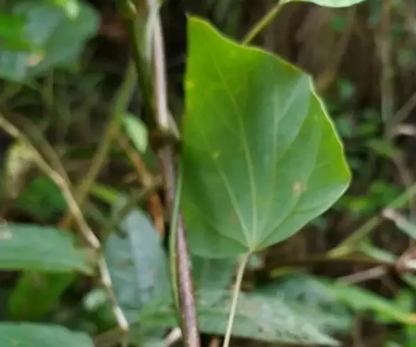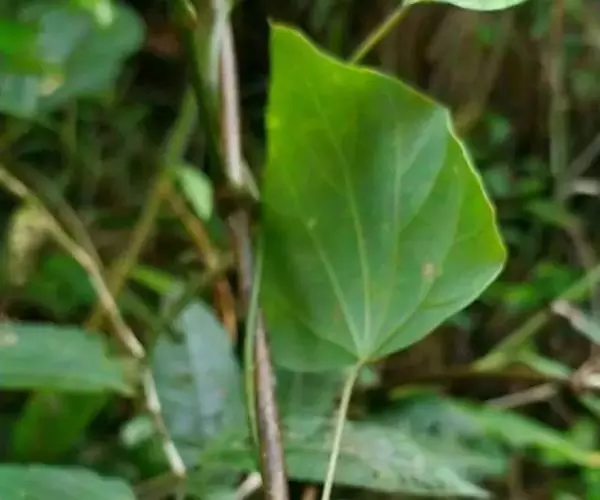 木质藤本,长达10余米或更长,小枝通常被灰黄色绒毛,有条纹,常长而下垂,老枝无毛。叶纸质至薄革质,三角状卵形至三角状近圆形,很少卵状椭圆形,长3.5 -8厘米,很少超过10厘米,顶端钝或圆,很少短尖,有小凸尖,基部近截平至心形,很少阔楔尖,边缘有圆齿或近全缘,两面被绒毛或上面被疏柔毛至近无毛,很少两面近无毛;掌状脉5条,很少3条,网状小脉稍明显;叶柄长3-7厘米,被绒毛,通常生叶片基部,极少稍盾状着生。聚伞花序伞房状,长2 -10厘米,被绒毛;雄花
