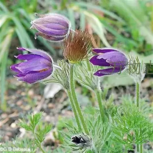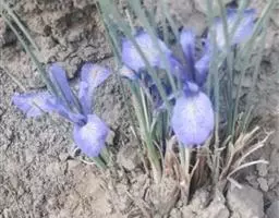 花茎甚短,不伸出地面;花1-2朵,淡蓝色、红紫色或白色,有香味,直径2.5-3厘米;花被裂片6,2轮排列,内、外轮花被裂片皆为倒卵形,顶端钝,长4-5厘米;雄蕊直立,长2.5厘米,花药黄色,顶端尖,略弯曲;花柱橙红色,长约4厘米,上部3分枝,分枝弯曲而下垂,柱头略扁,顶端楔形,有浅齿,较雄蕊长,子房狭纺锤形。蒴果椭圆形,长约3厘米。