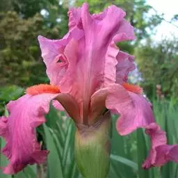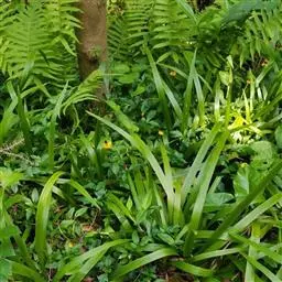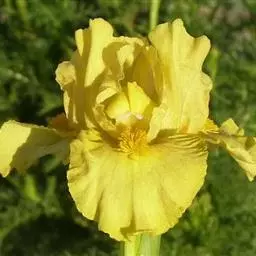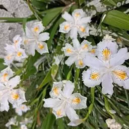 亮叶鸢尾为常绿多年生草本植物。叶面光滑、亮绿色,花茎扁平叶状。原产于巴西。