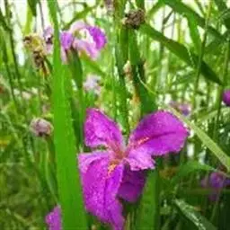 紫苞鸢尾是鸢尾科鸢尾属多年生草本植物,该植物的植株基部围有短的鞘状叶;根状茎斜伸,二歧分枝,…
