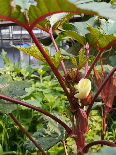 咖啡黄葵 Moench)亦称黄秋葵,是锦葵科一年生草本植物。茎圆柱形,疏生散刺。叶掌状,裂片阔至狭,…