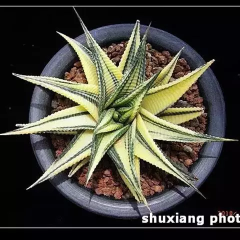 条纹十二卷 Haw.)是芦荟科十二卷属植物,为多年生肉质草本植物。植株高度10-15厘米,其呈莲座…