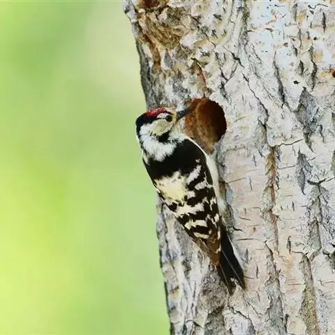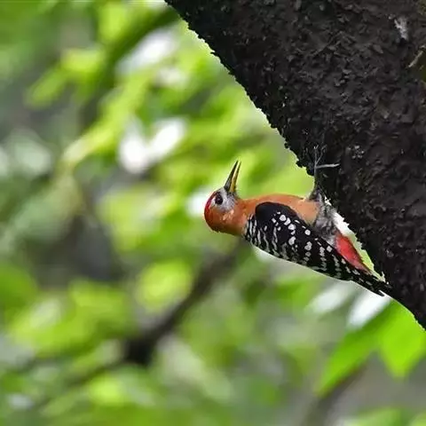星头啄木鸟是䴕形目啄木鸟科啄木鸟属鸟类,又称北啄木鸟、红星头喯打木、红星啄木等。头顶灰褐色,虹膜褐色,…