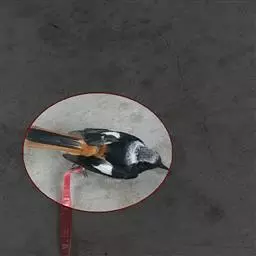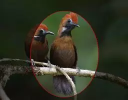 雌鸟和雄鸟相似,但羽色稍淡,仅头后部有朱红色。