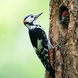 大斑啄木鸟隶属鸟纲鴷形目啄木鸟科。雄鸟头顶黑色,枕部红色,眼先、颊部和耳羽白色,颈部污白色,…