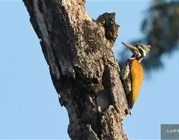 白腹黑啄木鸟,是啄木鸟科、黑啄木鸟属的中型鸟类,体长43-46厘米,头顶具长的红色羽冠,颚纹亦为红色,…