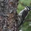 三趾啄木鸟,是啄木鸟科、啄木鸟属的小型鸟类,体长20-23厘米,雄鸟头顶金黄色,雌鸟黑色而具白色斑点。…