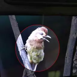 幼鸟羽色较成鸟浅淡。额、头顶黑褐色,枕部红色,亦不如成鸟鲜艳,其余似成鸟。