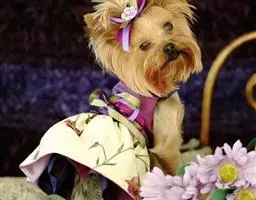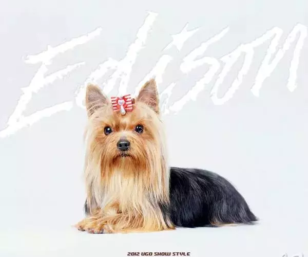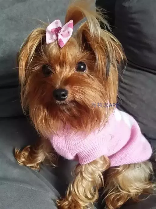 约克夏梗犬(YorkshireTerrier)因产于英国东北部约克郡而得名,故又称约克郡梗、约瑟犬、约瑟猩。约克夏梗身材娇小,体形仅次于吉娃娃小型犬,被毛柔滑如丝,如少女秀发,由头颈、躯干倾泻而下,光彩夺目。约克夏梗的头部经常用丝带装饰,并拥有梗类调皮的性格。拥有“上流贵妇人香闺”般的魅力。