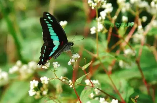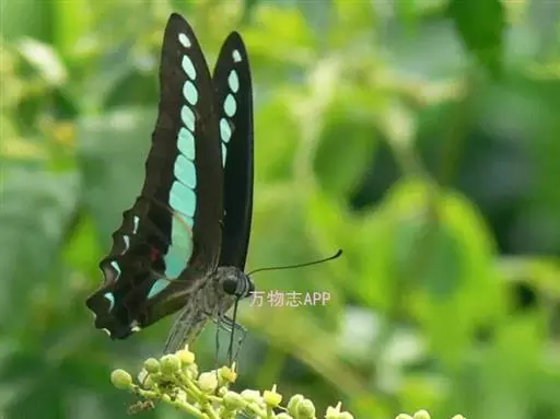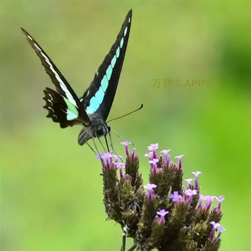 青带凤蝶Graphium sarpedon ,又名青凤蝶,是最普遍的中型凤蝶,飞行速度很快。青带凤…