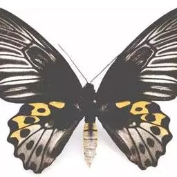 无明显的尾状突起,雌雄差异不大,雄性青带凤蝶后翅内部生有密密的白毛。