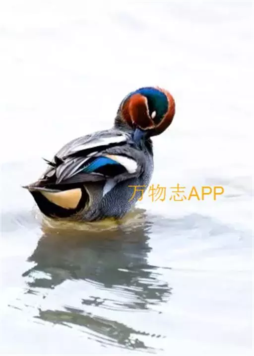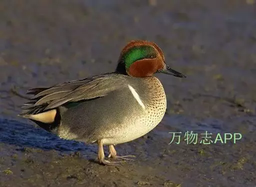 绿翅鸭是小型鸭类,体长37厘米,体重约0.5千克。嘴脚均为黑色。雄鸟头至颈部深栗色,…