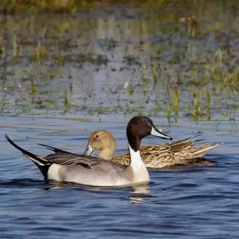 针尾鸭,是雁形目鸭科鸭属动物。体长约75厘米的大型戏水鸭,雄鸟头暗褐色,颈侧有白色纹路,…
