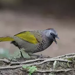 习性:留鸟。主要栖息于海拔2400米以下的山地常绿阔叶林、混交林、针叶林和沟谷林中。常成对或成3.5只至10余的小群活动,有时亦见多达20只的大群(郑作新等1987),多在乔木树冠层枝叶间,尤其喜欢在开花的树上枝叶间活动和觅食,有时也沿树干攀缘觅食,并不时发出响亮的叫声。