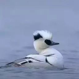 斑头秋沙鸭,是鸭科、斑头秋沙鸭属鸟类。雄鸟眼先和眼周黑色,成块斑状;头部其余部分全为白色。…