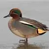 绿翅鸭是小型鸭类,体长37厘米,体重约0.5千克。嘴脚均为黑色。雄鸟头至颈部深栗色,…