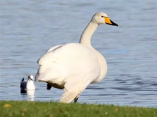 野外鉴别特征:大型水禽,体重4~7千克,体长110~135厘米。全身洁白,嘴端黑色,嘴基黄色,外形和大天鹅非常相似,但体型明显较大天鹅小,颈和嘴亦较大天鹅短,嘴上黑斑大,黄斑小,黄斑仅限于嘴基两侧,沿嘴缘不前伸于鼻孔之下;鸣声清脆,有似“Kou-kou”的哨声,而不像大天鹅的喇叭声。野外不难区别。雪雁和小天鹅也较相似,全身白色,但雪雁体型较小,嘴呈赤红色,嘴上无黑斑,初级飞羽黑色,站立时尾部呈黑色,飞翔时翅尖呈黑色,明显与小天鹅不同。