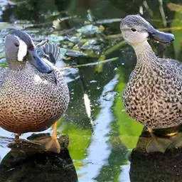 蓝翅鸭是雁形目、鸭科的鸟类。身长37-41 cm,头部灰色,眼圈、眼纹和眼先均灰白色。体羽红褐色,…